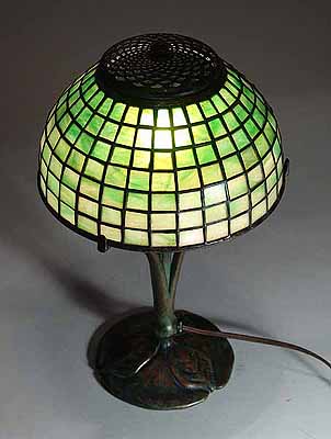 8" Geometric Tiffany Leaded Glass shade #1568-8 & Leaf Bronze Tiffany Lamp Base # 426 base