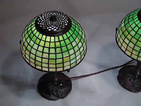 A Pair of Tiffany lamp shades GEOMETRIC # 1568-8 Diameter: 8" (20.5 cm)