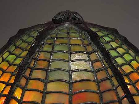15" Spider Tiffany Lamp #1424 on Mushroom Bronze lamp base #337