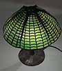 15" Spider Tiffany Lamp #1424 on Mushroom Bronze lamp base #337