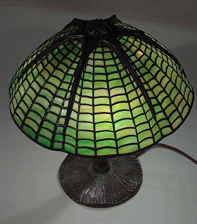 15" Spider Tiffany Lamp #1424 on Mushroom Bronze lamp base #337