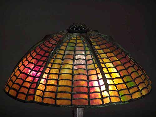 15" Spider and Web Tiffany Lamp #1424 & Mushroom Bronze lamp base #337