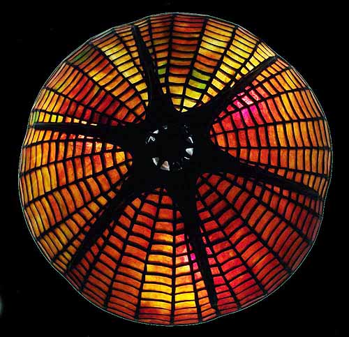 15" Spider and Web Tiffany Lamp #1424 & Mushroom Bronze lamp base #337