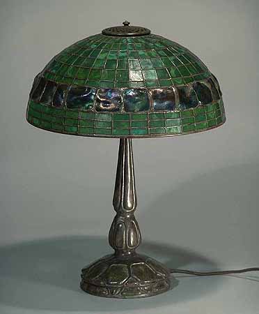 Tiffany Lamp Shade: TURTLEBACK # 1434 Diameter: 16" (40,8 cm) & Bronze Lamp Base: MOCKTURTLE # 587