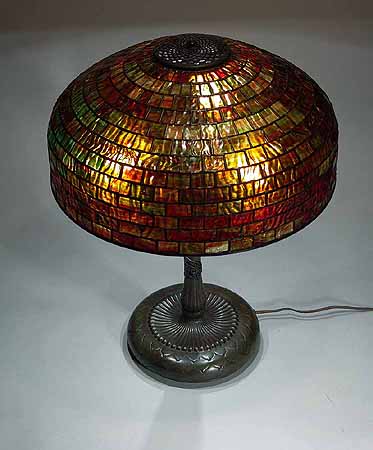 18" Geometric designed leaded glass shade (Plain Squares, Brick) #1469 & Pineapple bronze casted Tiffany lamp base #366