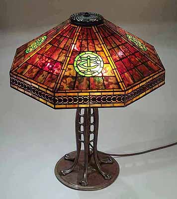 20" Tiffany Lamp shade LIBARY #1914 & Bronze lamp base JACOBS LADDER #500