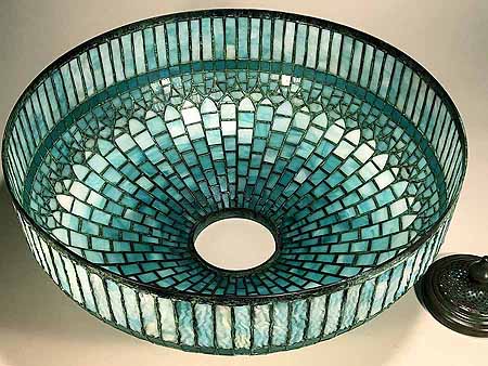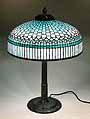 22" CURTAIN BORDER Leaded Glass and Bronze Table lamp "TIFFANY BLUE"