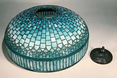 22" CURTAIN BORDER Leaded Glass and Bronze Table lamp "TIFFANY BLUE"