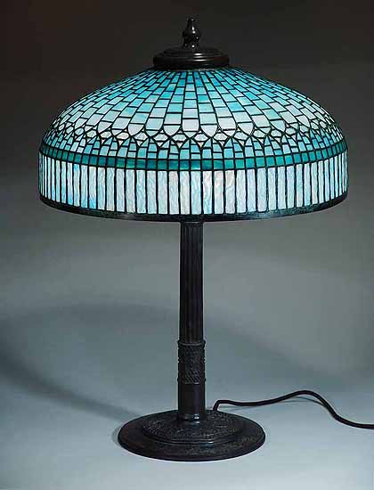 22" CURTAIN BORDER Leaded Glass and Bronze Table lamp "TIFFANY BLUE"