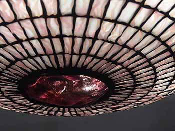 24" Parasol leaded glass and Bronze Chandelier #1520 with glass tile centerpiece
