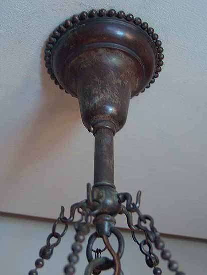 Bronze chain fixture will be adjusted to your specification of length. 24" Parasol lamp shades are available in any color you wish to order. The lamp is wired according to US safety standards. It comes with 6 lamp sockets. Other standards of
