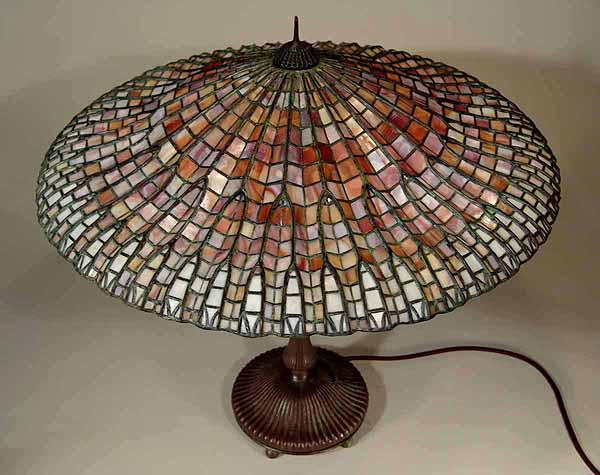 25" LOTUS LEAF TIFFANY LAMP #1524 ON RIBBED BASE