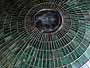 32 Inch leaded Glass and Bronze Tiffany TURTLEBACK TILE PARASOL CHANDELIER