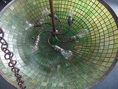 32 Inch leaded Glass and Bronze Tiffany TURTLEBACK TILE PARASOL CHANDELIER
