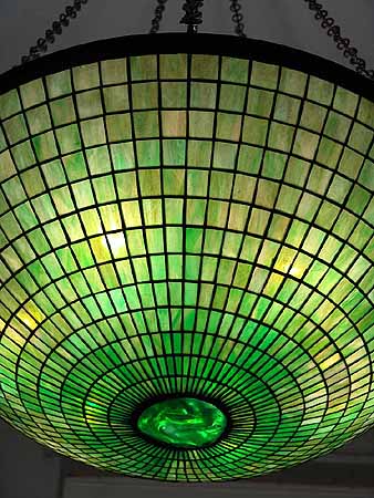 32 Inch leaded Glass and Bronze Tiffany TURTLEBACK TILE PARASOL CHANDELIER