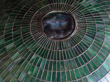 32 Inch leaded Glass and Bronze Tiffany TURTLEBACK TILE PARASOL CHANDELIER