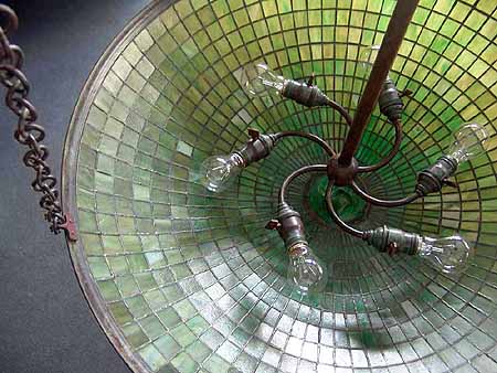 32 Inch leaded Glass and Bronze Tiffany TURTLEBACK TILE PARASOL CHANDELIER
