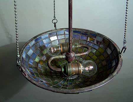 Leaded glass and bronze lamp shade