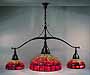 21 1/2" and 12" Turtleback band triple light leaded glass and bronze Pool Table chandelier. Design by Tiffany Studios New York