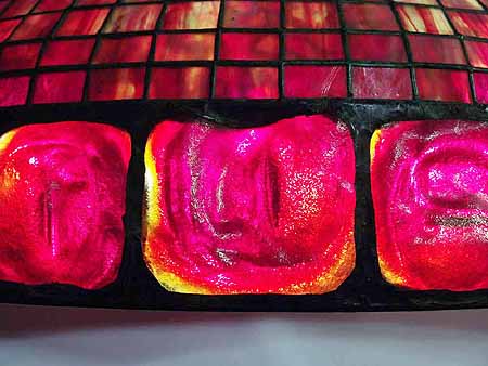 There is one triple light Pool table lamp known made by Tiffany Studios NY, which has this geometric design with Turtleback tile bands.