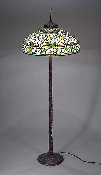 22" White Dogwood Leaded Glass and Bronze Tiffany floor Lamp # 1504