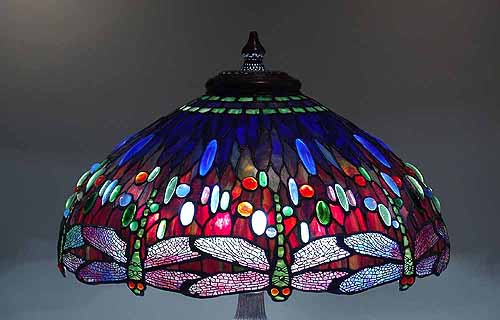 22" Dragonfly Tiffany lamp shade scarab blue #1507 & Bronze Junior  Pinao floor base #377