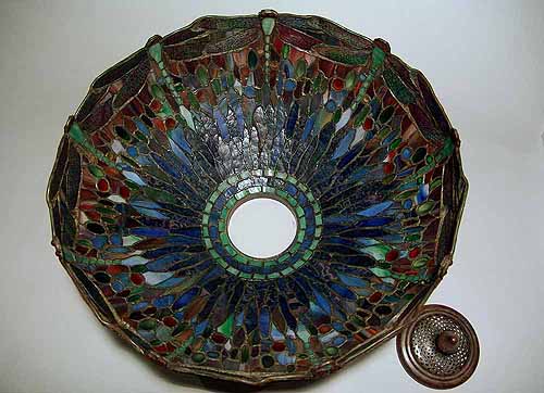 22" Dragonfly Tiffany lamp shade scarab blue #1507 & Bronze Junior  Pinao floor base #377