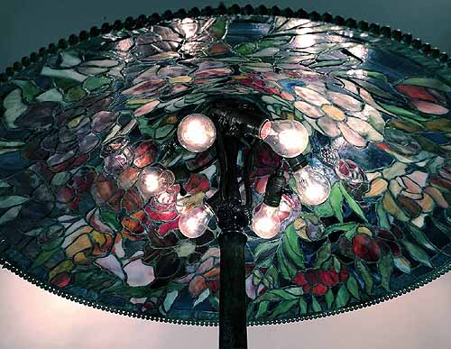 29" Peony leaded glass and bronze Tiffany lamp #603 on Piano Junior Floor base #387