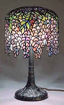 10" Pink Wisteria Leaded Glass and Bronze Tiffany Lamp #349