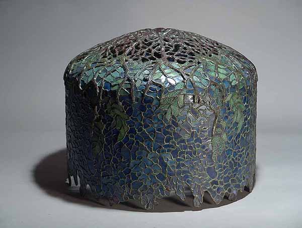 18" BLUE/ PINK WISTERIA leaded glass and bronze Tiffany lamp #342