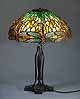 18" Hanging head Dragonfly leaded glass Tiffany lamp & #481 Lions Claw telescoping bronze lamp base