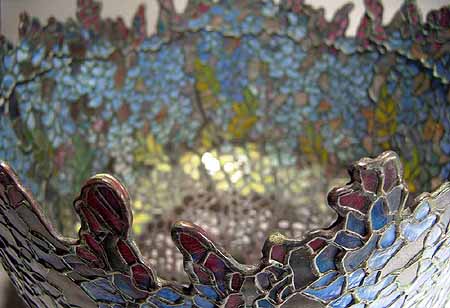18" Wisteria Royal Blue leaded glass and bronze Tiffany lamp #342