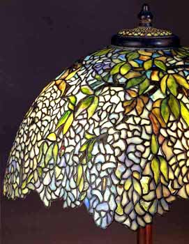 22" LABURNUM (blue) leaded glass and bronze Tiffany Lamp #1539 & Bronze casted large Stick base #531
