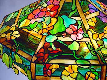 25" NASTURTIUM TRELLIS #607 Leaded glass and bronze Tiffany octagonal lamp shade