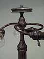The suface of the lamp base and sockets are patinated with brown /dark green- brown Tiffany patina made in our Studio using the original recipe handed down by Tiffany Studios New York. No lacquer is used in the patination process.