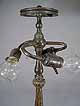 This base is wired according to US safety standards. It comes ready to use in the USA with three turn key lamp sockets and new old style cloth covered lamp cord. Other standards of electrification are available at no extra cost. The suface of the lamp base and sockets are patinated with brown /dark green- brown Tiffany patina made in our Studio using the original recipe handed down by Tiffany Studios New York. No lacquer is used in the patination process.