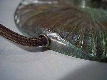 This base is wired according to US safety standards. It comes ready to use in the USA with new old style cloth covered lamp cord and 3 Leviton US lamp sockets. Other standards of electrification are available at no extra cost. The suface of the lamp base and sockets are patinated with brown /dark green- brown Tiffany patina made in our Studio using the original recipe handed down by Tiffany Studios New York. No lacquer is used in the patination process.