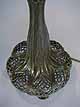 The suface of the lamp base and sockets are patinated with brown /dark green- brown Tiffany patina made in our Studio using the original recipe handed down by Tiffany Studios New York. No lacquer is used in the patination process.