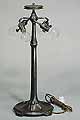 This base is wired according to US safety standards. It comes ready to use in the USA with new old-style cloth covered lamp cord and 4 US turn key lamp sockets. Other standards of electrification are available at no extra cost. The suface of the lamp base and sockets are patinated with brown /dark green- brown Tiffany patina made in our Studio using the original recipe handed down by Tiffany Studios New York. No lacquer is used in the patination process.
