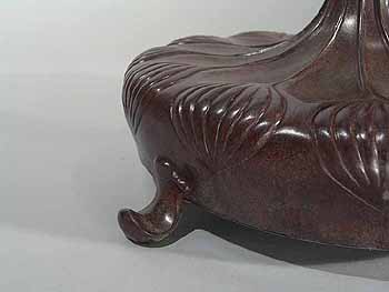 This base is wired according to US safety standards. It comes ready to use in the USA with new old style cloth covered lamp cord and six standard US lamp sockets. Other standards of electrification are available at no extra cost. The suface of the lamp base and sockets are patinated with brown /dark green- brown Tiffany patina made in our Studio using the original recipe handed down by Tiffany Studios New York. No lacquer is used in the patination process.