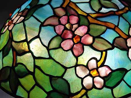 16" APPLE BLOSSOM #1455 Tiffany Lamp shade & SMALL STICK Bronze casted Tiffany Lamp base #533