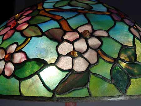 16" APPLE BLOSSOM #1455 Tiffany Lamp shade & SMALL STICK Bronze casted Tiffany Lamp base #533
