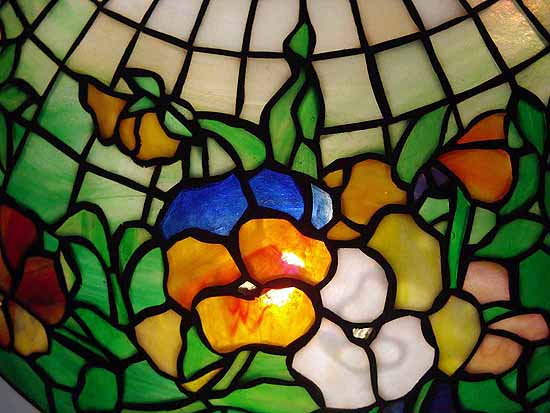 TIFFANY LAMP 16" PANSY on LUMIS BRONZE LAMP BASE