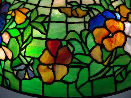 TIFFANY LAMP 16" PANSY on LUMIS BRONZE LAMP BASE