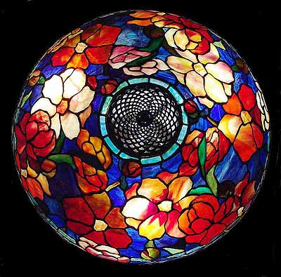 18" Peony Tiffany Lamp shade #1475 on Twisted Vine bronze casted lamp base #445