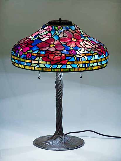 18" Peony Tiffany Lamp shade #1475 on Twisted Vine bronze cast lamp base #445