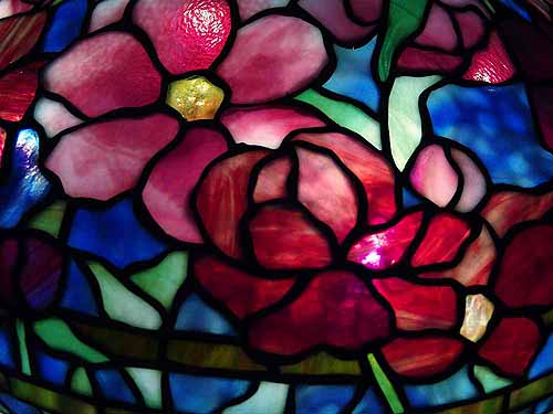 Two 18" Peony Tiffany Lamps #1475 on Twisted Vine bronze cast lamp bases #445
