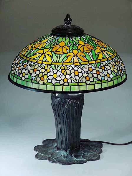 20" Jonquil Daffodil leaded glass and bronze Tiffany lamp